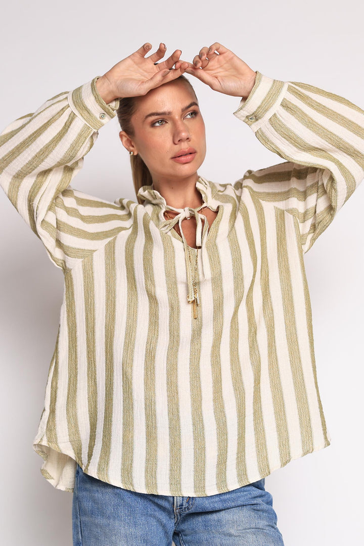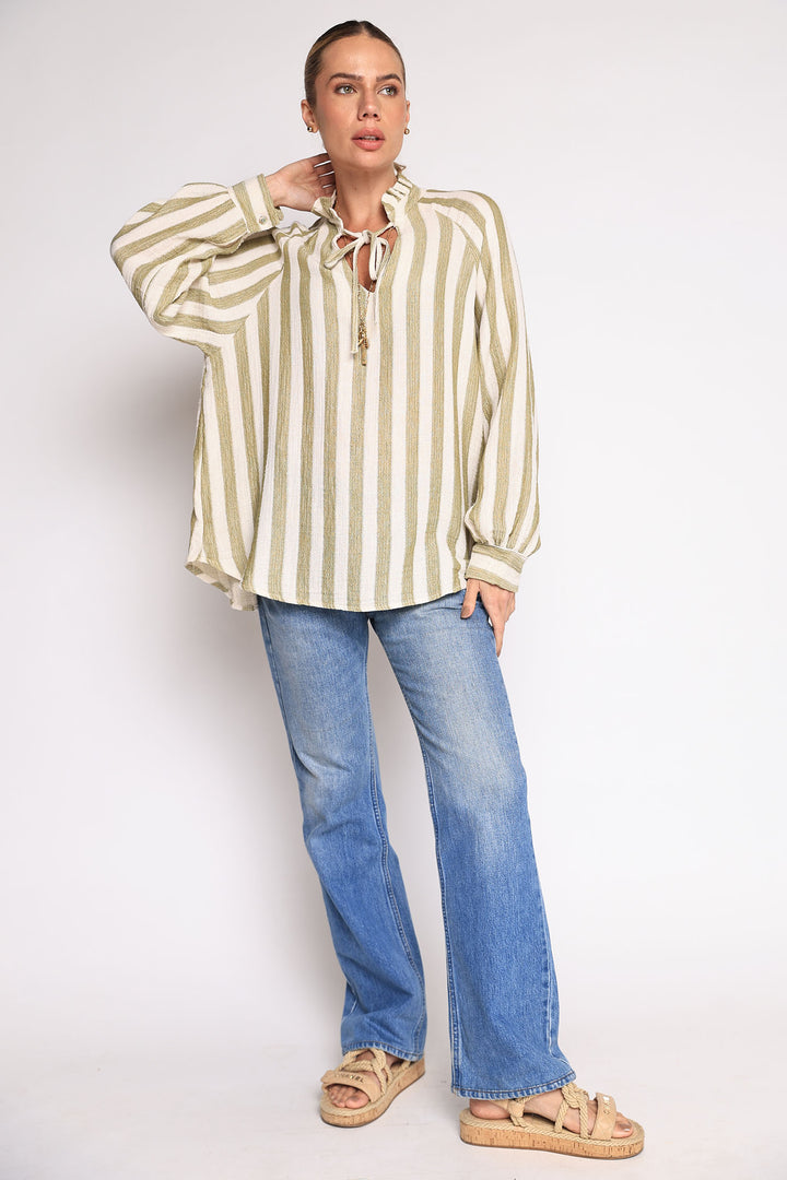 Bata listrada com fios de lurex