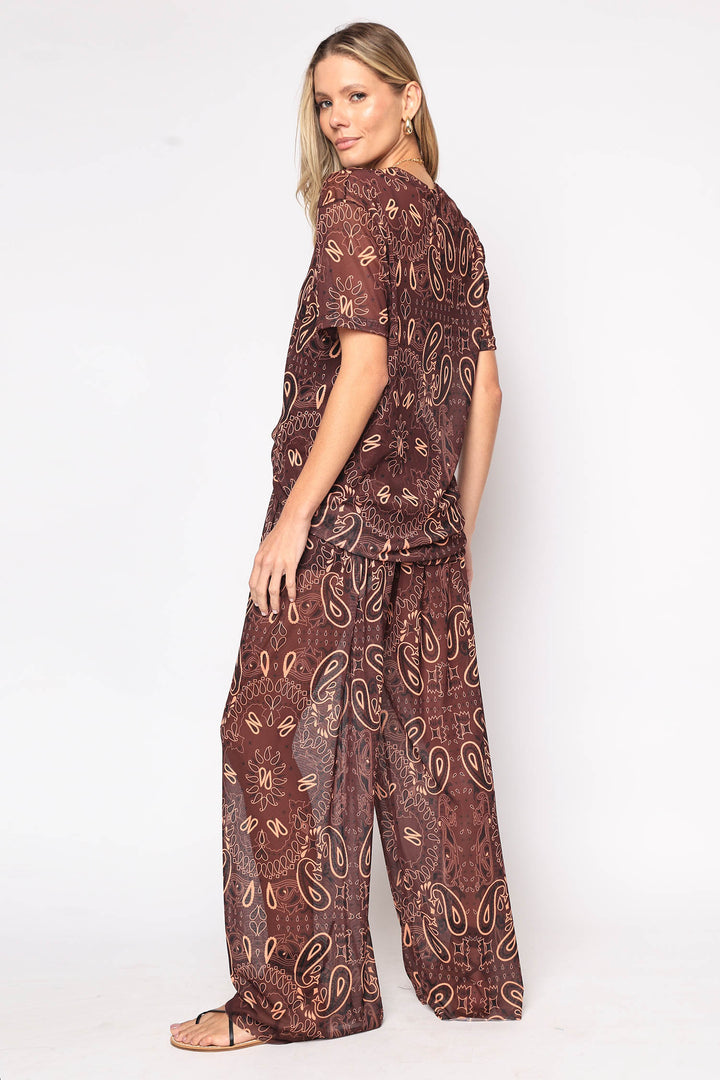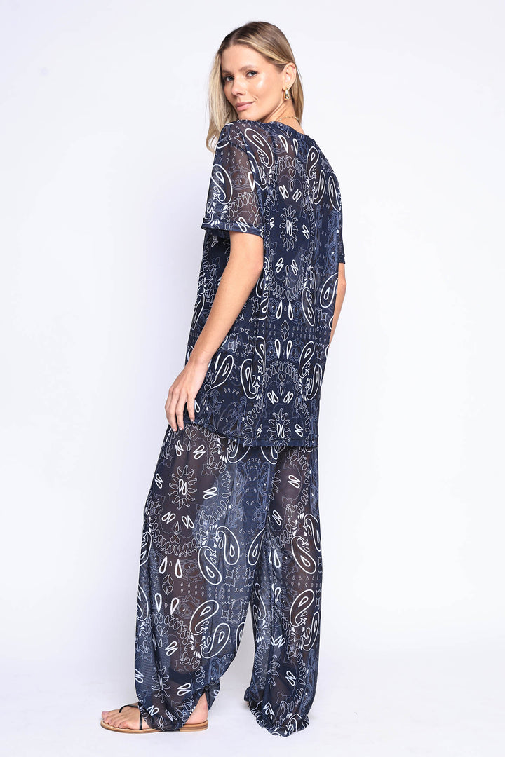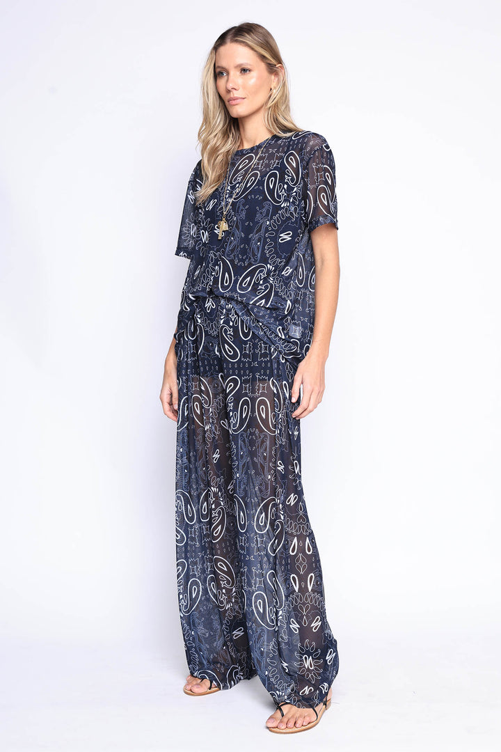 Calça de tule com estampa de bandana com fita regulável na cintura