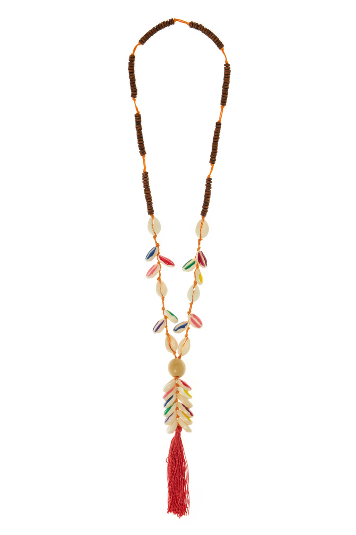 COLAR LONGO BUZIOS TASSEL VERMELHO UNICO