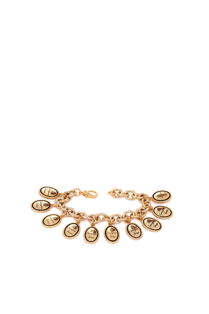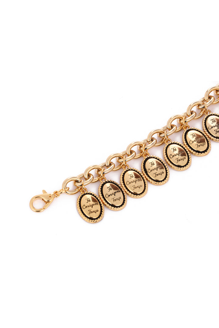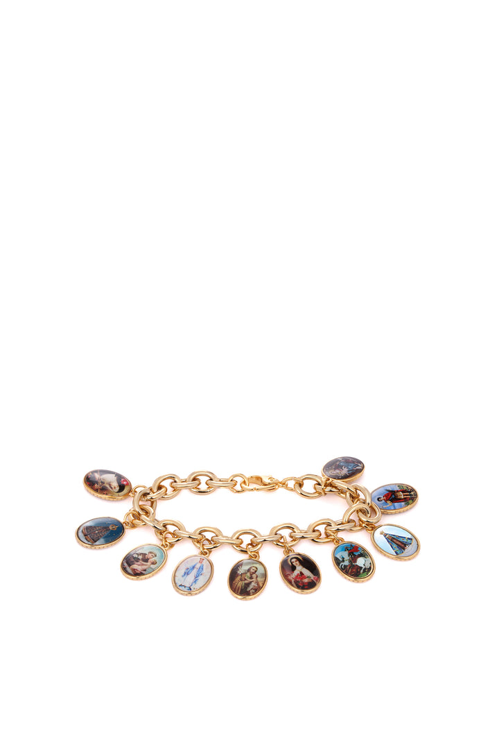 Pulseira dourada com medalhas de santos