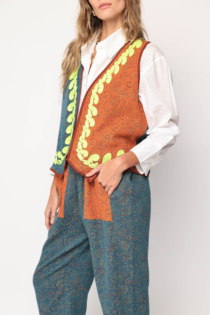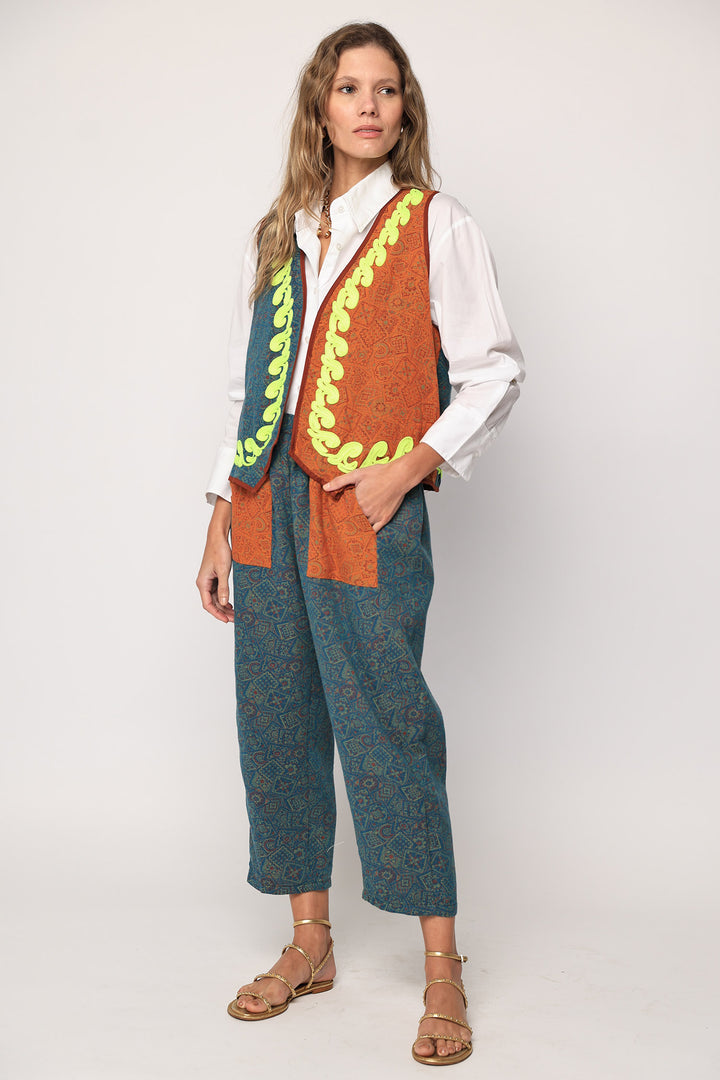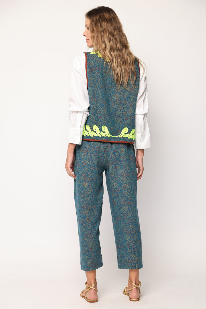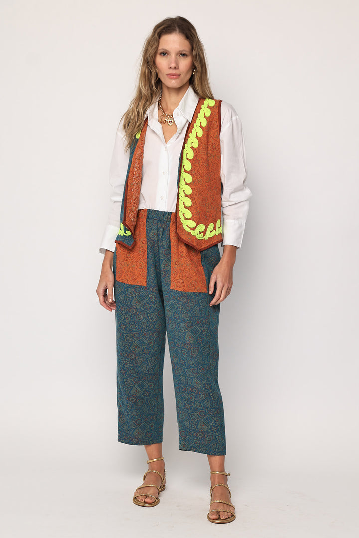 Conjunto de calça com elástico na cintura e colete com estampa de bandana