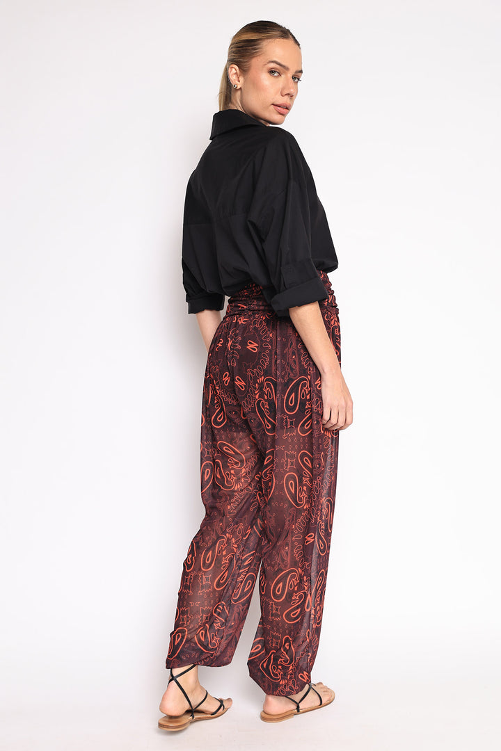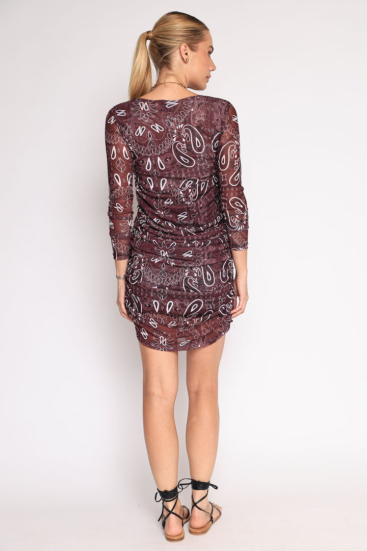 Vestido de tule com estampa de bandana, drapeado nas laterais